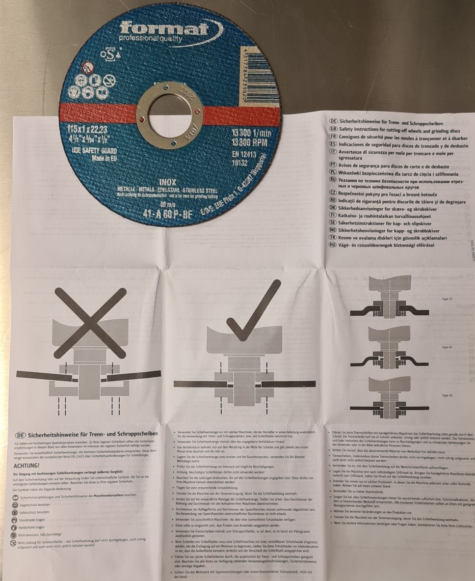 Korund mit Faserstoffverstärkter Kunstharzbindung für hohe Standzeiten und Schleifleistung.Ohne eisen- schwefel- und chlorhaltige Füllstoffe.