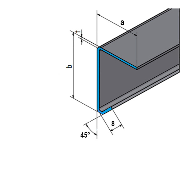 Aluminium Winkel 90° mit Tropfkante innen 1,0 mm axb 150x50mm L bis 2500 mm