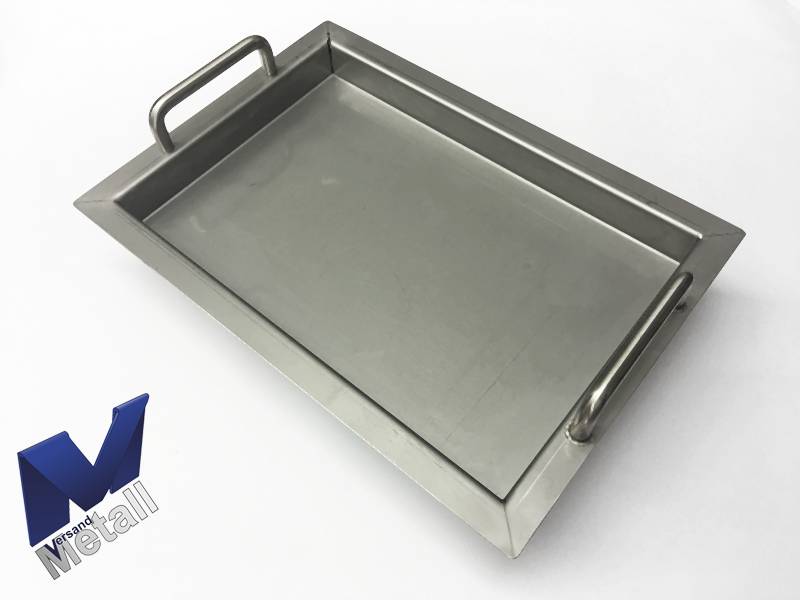 Edelstahlwanne Reihe 3 geschweißt 1,5mm, mit Griffkante, Außen Schliff K320, Länge/Tiefe (a) von 450mm, Breite (b) von 300 bis 900 mm, verschiedene Höhen, auch mit 2 Bügelgriffen auswählbar.