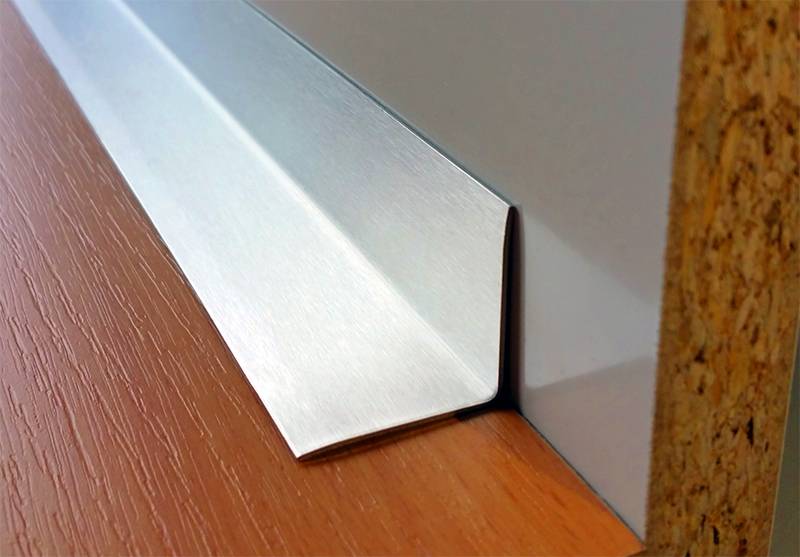 Innen Eckenschutz aus Edelstahl 1-fach gekantet, Oberfläche wahlweise einseitig mit Schliff Korn 320 oder spiegelnd/glänzend in verschiedenen Stärken und Größen lieferbar. Ihre Wunschlänge bis maximal 1000 mm geben Sie bitte im Feld unten ein.