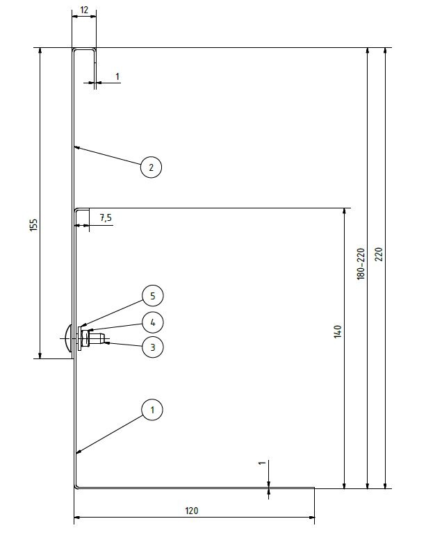 Einstellbare Höhe von 180 bis 220 mm