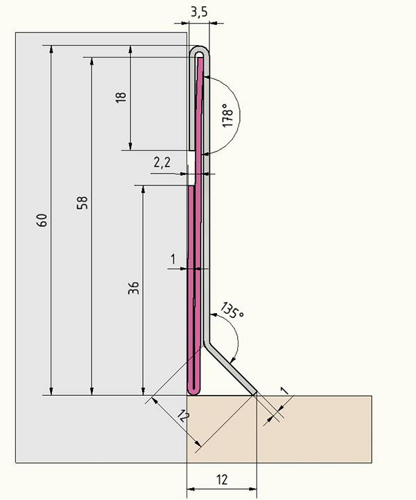60mm hohes Sockelprofil aus Edelstahl, mit Falz zur einfachen Befestigung, Oberfläche einseitig mit Schliff Korn 320 in verschiedenen Längen lieferbar. Die benötigten Wandhalter (siehe ergänzende Produkte) bitte separat bestellen.