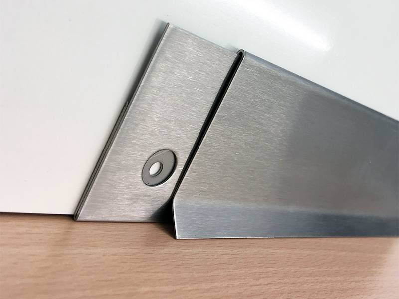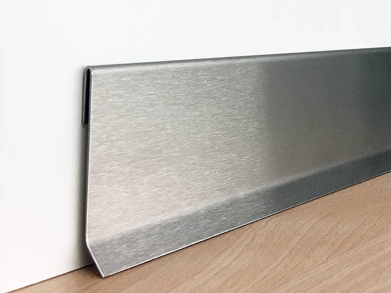 Sparset 120 Meter (48 x 2500mm) SLF-2, 60mm hohes Sockelprofil aus Edelstahl, mit Falz zur einfachen Befestigung, Oberfläche einseitig mit Schliff Korn 320 inkl 300 St Halter/Support für SLF