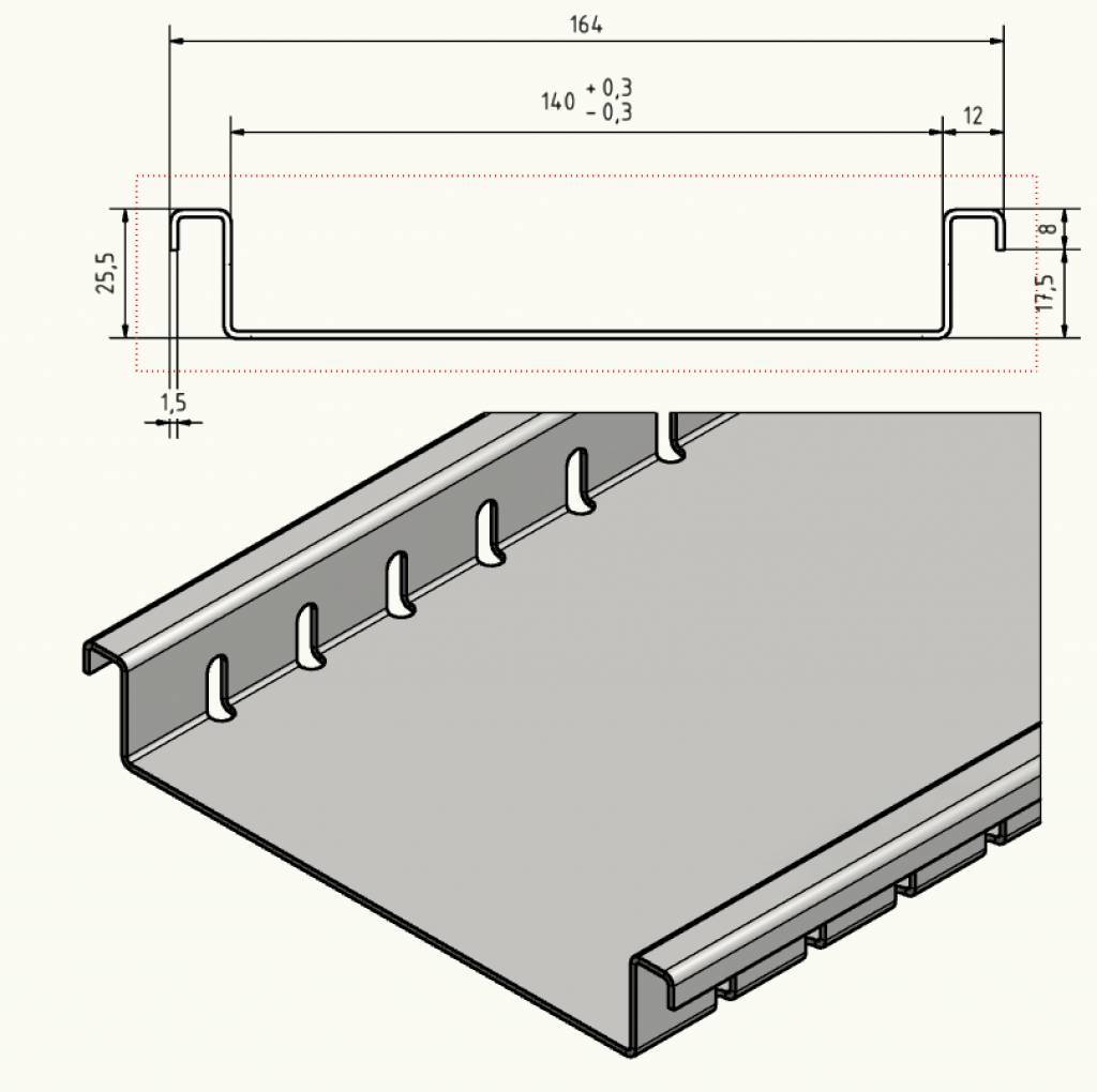 Lesen Sie mehr...Die Herstellung der Rinne erfolgt aus hochwertigem 1,5mm starkem Aluminium.