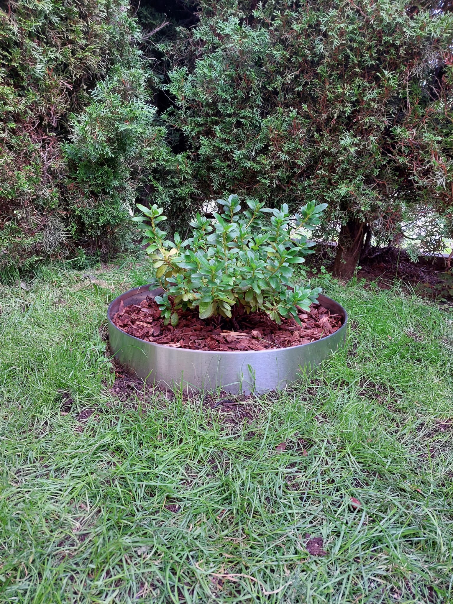 Anneau de plantation en acier inoxydable (V2A) en 2 parties, diamètre 1260 mm, bordure de pelouse ronde avec pli, anneau pré-cintré en demi-coquille, hauteur 20 cm