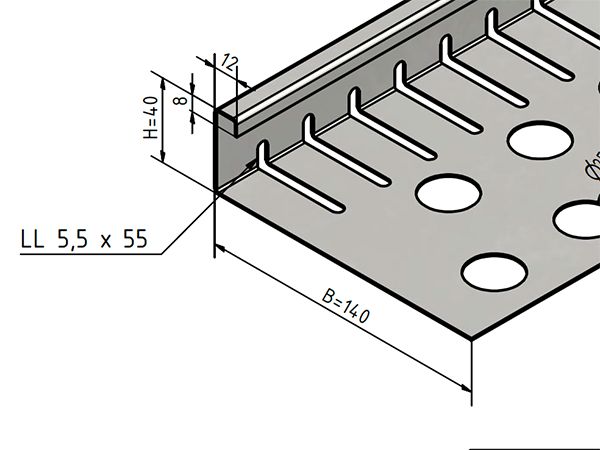 Lire plus...Bande pare-gravier petite – aluminium anthracite (similaire à RAL 7016) – perforée – pliée à 90° .