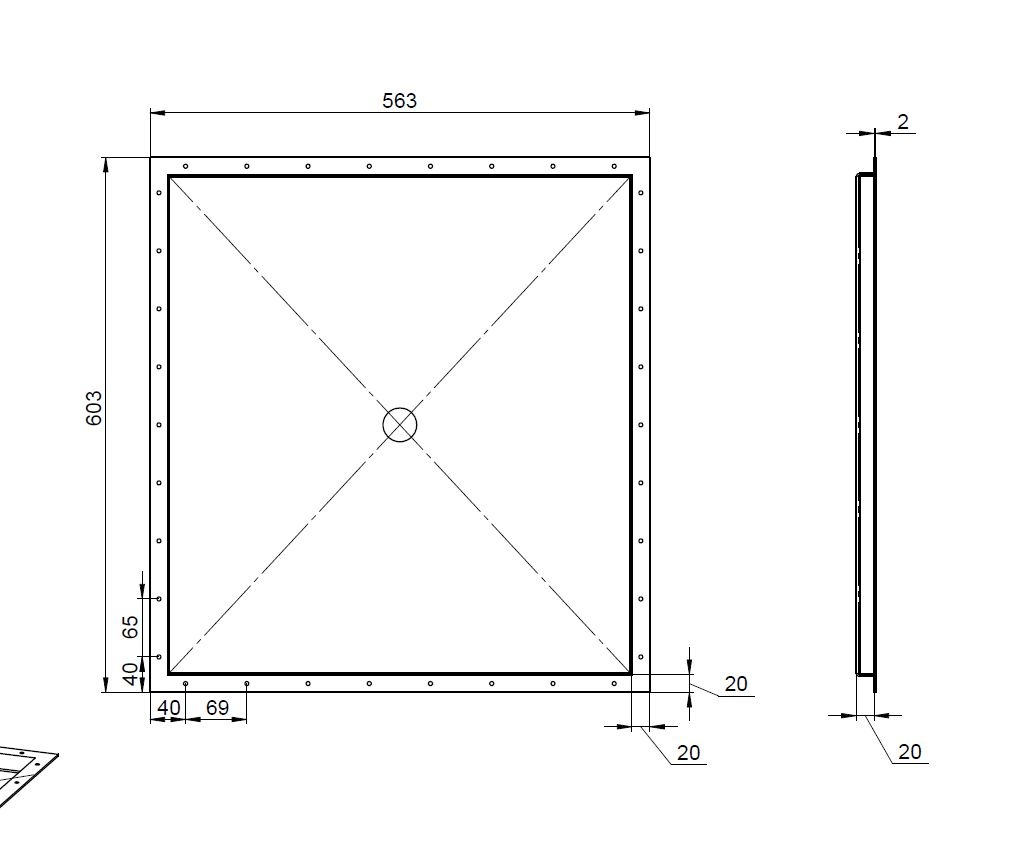 Ensemble spécial 2 pièces - receveur de douche en acier inoxydable, base de douche {R3A} 1,5 mm, finition intérieure K320, dimensions selon le dessin : 2006916-02-013-004, 006916-02-013-005