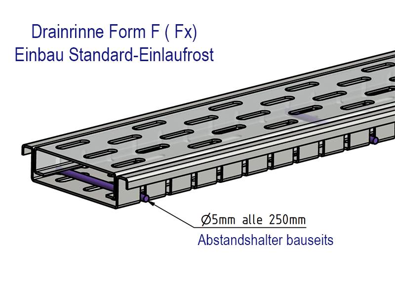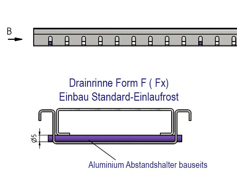 Ensemble spécial de caniveaux de drainage en aluminium, type Fx2, avec perforation de fond, largeur d'entrée 150 mm, type F, comprenant des grilles à fentes en acier inoxydable : 1 pièce de 1000 mm, 12 pièces de 2000 mm, 7 connecteurs, 15 pièces d'extrém