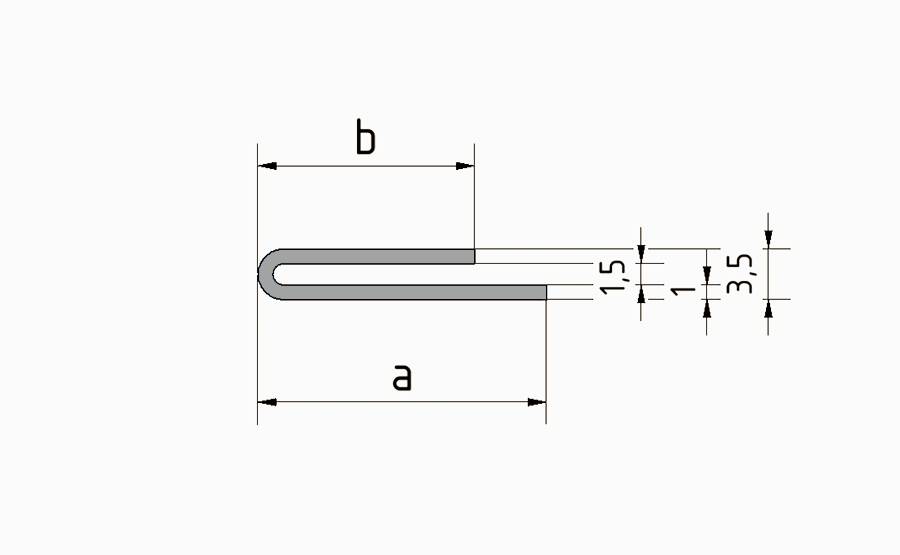 profilé de serrage ecart de 1,5 mm acier inoxydable a / b 15 / 20mm t = 1,0 mm longueur 1000 mm, surface brossé en grain 320