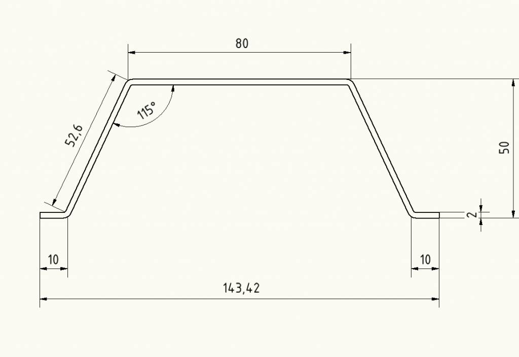 Profilé Omega en acier inoxydable de 2mm, grain 320 brossé, h 50mm c 80mm L = 2000mm