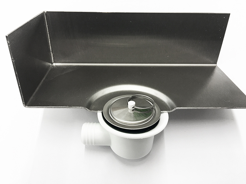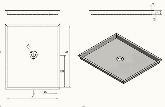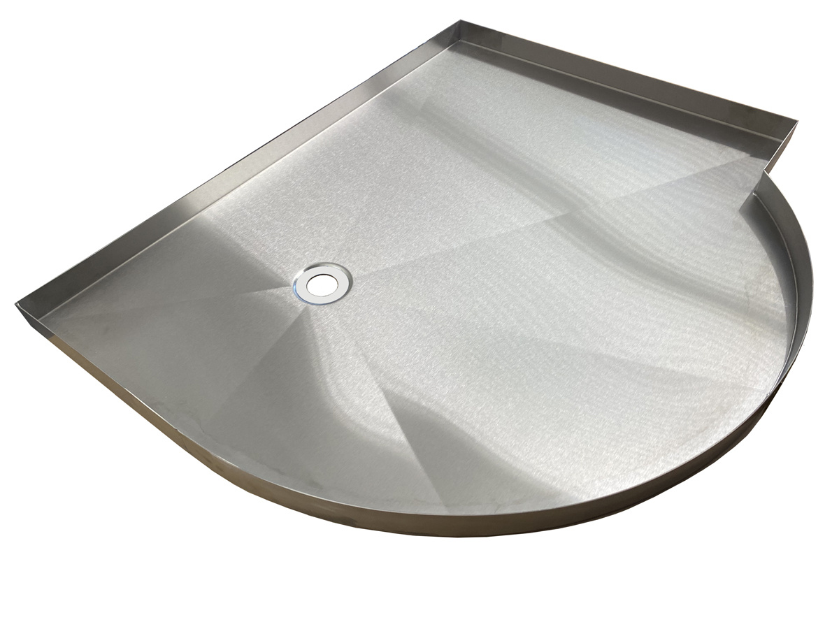 Receveur de douche en acier inoxydable, base de douche {R3A} 1,5 mm, dimensions extérieures : longueur 780 mm, largeur 674 mm, hauteur 30 mm avec rebord de 20 mm, cambrure env. 10 mm, bonde centrale