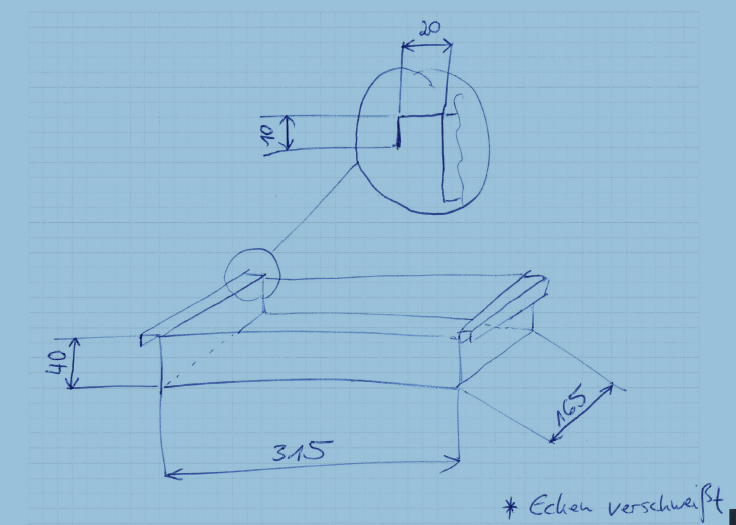 Receveur de douche sur mesure en acier inoxydable {R2A} 1,5 mm, finition intérieure K320, dimensions 315 x 165 mm (avec rebord), hauteur 40 mm, selon croquis