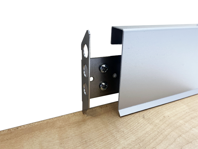Profilé de base de 70 mm de hauteur en aluminium anodisé, avec double feuillure, surface brute disponible en différentes longueurs. Veuillez commander le support mural (voir produits supplémentaires) séparément. Longueur souhaitée jusqu'à la longueur maxi