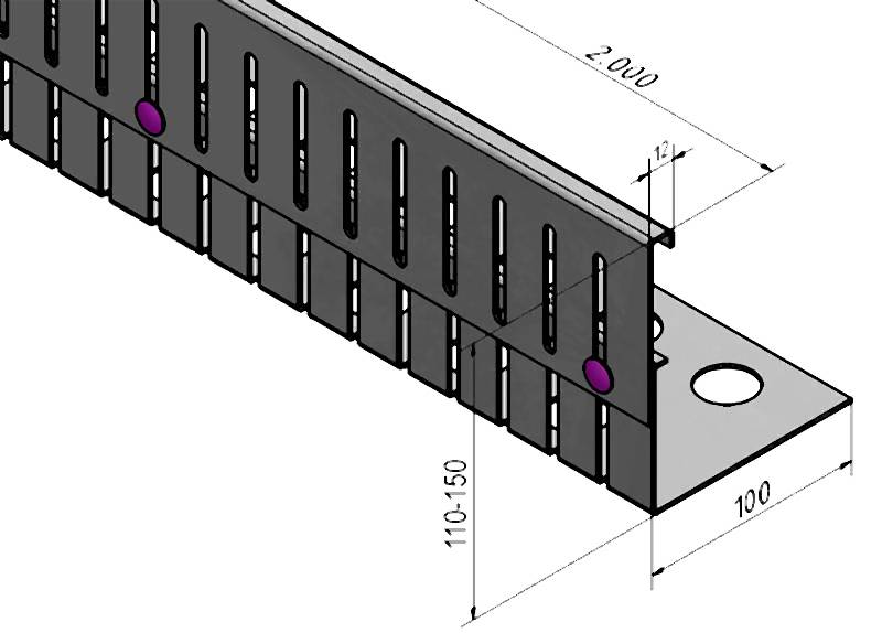 Lire plus...Bande de gravier grande - acier inoxydable - perforé - 90 °.