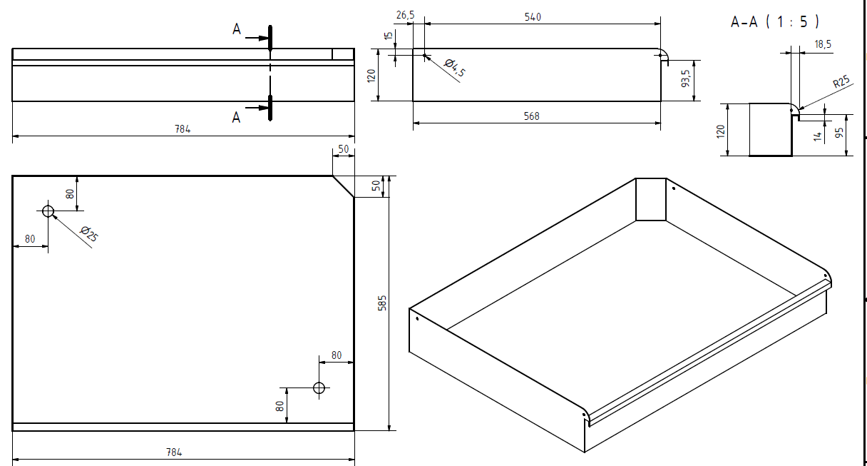 Lire plus...Bacs en acier inoxydable, pliables en une seule pièce , une face avec finition K320