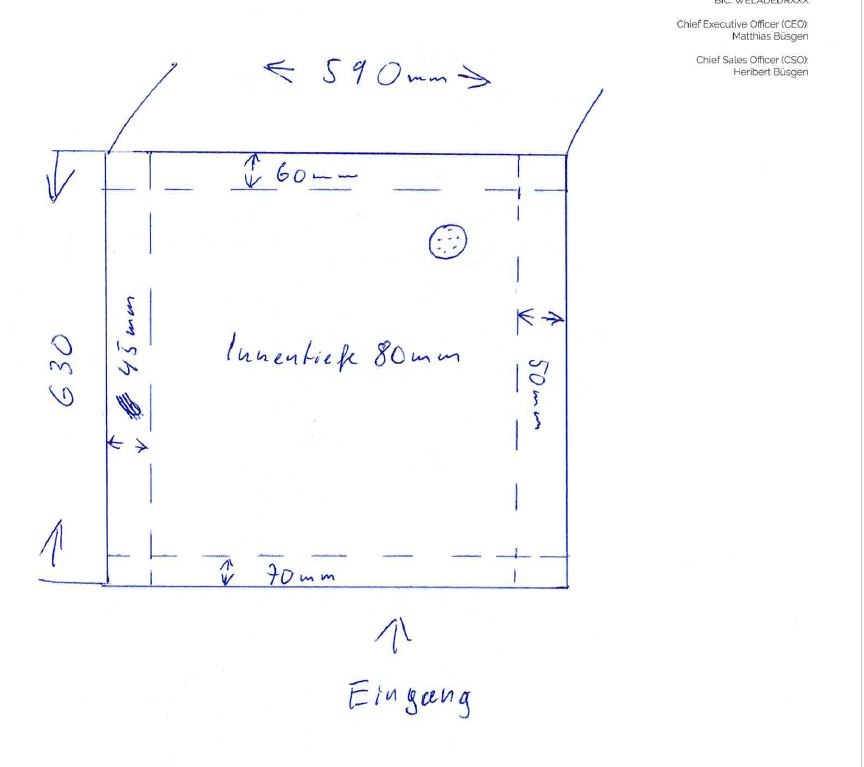 Receveur de douche spécial en acier inoxydable, base de douche {R3A} 1,5 mm, ponçage INTÉRIEUR K320, dimensions avec bord : 590x630 mm, profondeur intérieure 80 mm, bord périphérique selon croquis, évacuation en haut à droite.