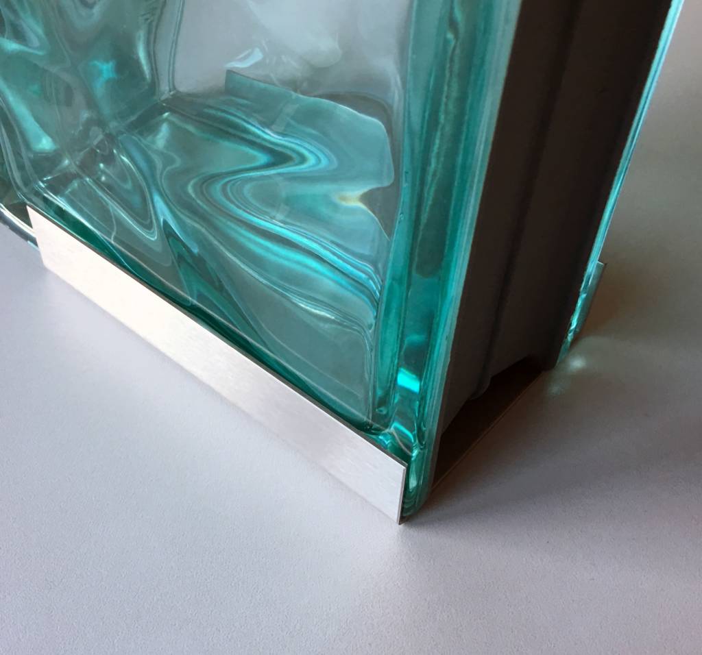 Profil encadrement, profil en U finition, en acier inoxydable de 1,5mm, pour briques de verre de 80mm et 100mm d'epaisseur, longueur disponible jusqu'à 2500mm max.