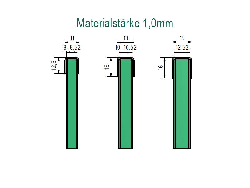 Profil encadrement pour verre, profil U en acier inoxydable de 1,0mm, longueur disponible jusqu'à 2500mm max., pour verres de 8 jusqu'à 21,52mm