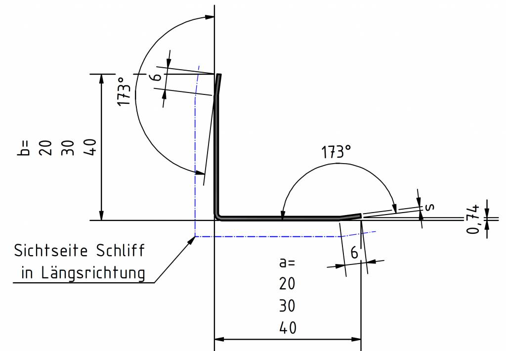 Corniéres de protection inox, pas isocèle, á 3 plis, longueur 2.5000mm, surafce brossé en grain 320, surface avec film de protection unilatéral. Saisissez s.v.p. le longueur souhaité jusqu'à longeur commandée max. 2.500mm dans le fenêtre ci-des....