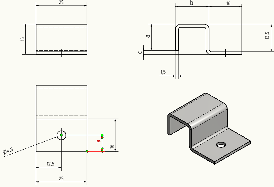 Clip U1-U3, kleine onderdelen van 1,5 mm RVS, 1 zijde geborstelde korrel 320, onderdelen met de hand ontbraamd.