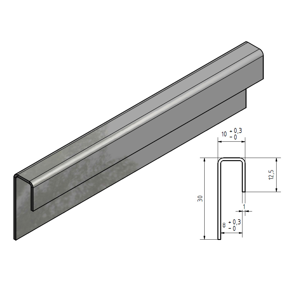 Glasrandprofiel, gemaakt van 1,00 mm roestvrij staal, vor glasdickte 8 mm, ongelijk gezetGlasrandprofielen ter bescherming van glazen randen. Voor glazen deuren, glazen wanden, glazen scheidingswanden, trapleuningen, keuken achterwanden, goten voor gl...