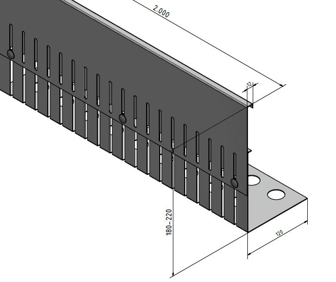Grindstopstrip in hoogte verstelbaar 180-220mm - aluminium AL99.5 - geperforeerd - 90° gebogen. Hoogwaardige grindvangstroken voor het opvangen van stortgoed, grind of granulaat en voor het afvoeren van regenwater.