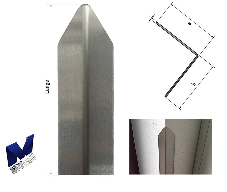 Hoekbeschermingshoek modern met punt 1-voudige rand, gemaakt van roestvrij staal, oppervlak één zijde met grondkorrel 320.