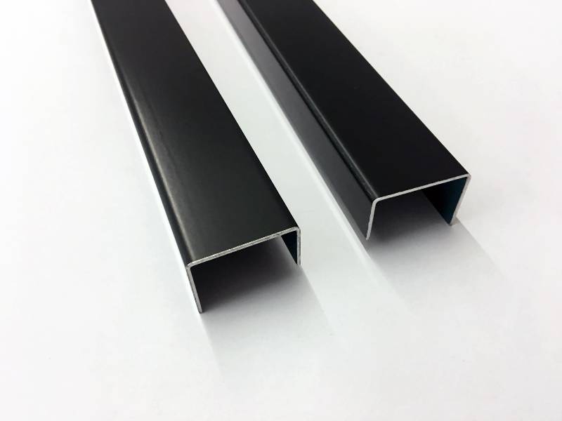 Speciaal U-profiel van aluminium, dubbelgevouwen, antracietkleurig oppervlak (RAL 7016), afmetingen (axcxb): 130x150x130 mm; materiaaldikte 1,5 mm; lengte 2500 mm