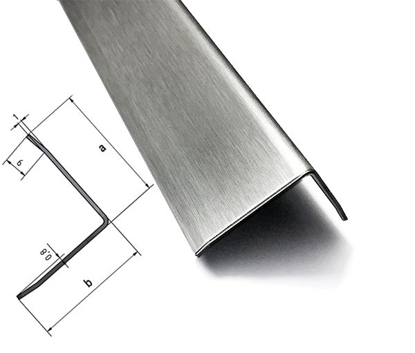 RESTERENDE VOORRAAD [W5] Set van 25 RVS hoeken, drievoudig gevouwen, oppervlakteafwerking K320, zichtbare zijde BUITEN, as: 15x15 mm, materiaaldikte: 1,0 mm, lengte 2000 mm