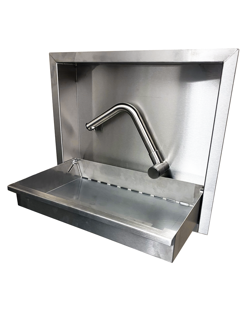 Onze opklapbare wastafel van roestvrij staal is de ideale oplossing voor expeditievoertuigen, busjes, campers en motorhomes. Gemaakt van hoogwaardig 1,5 mm roestvrij staal, biedt hij uitzonderlijke stabiliteit, duurzaamheid en is hij gemakkelijk schoon te maken. Het tweedelige, opklapbare ontwerp bespaart ruimte in het voertuig en maakt handig gebruik onderweg mogelijk.
