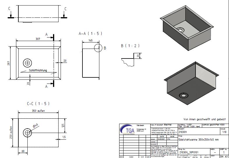 De opgegeven afmetingen zijn externe afmetingen. De productie is gemaakt van hoogwaardig roestvrij staal [1.4301]
