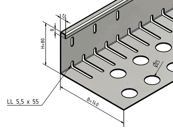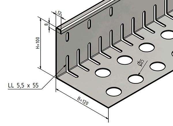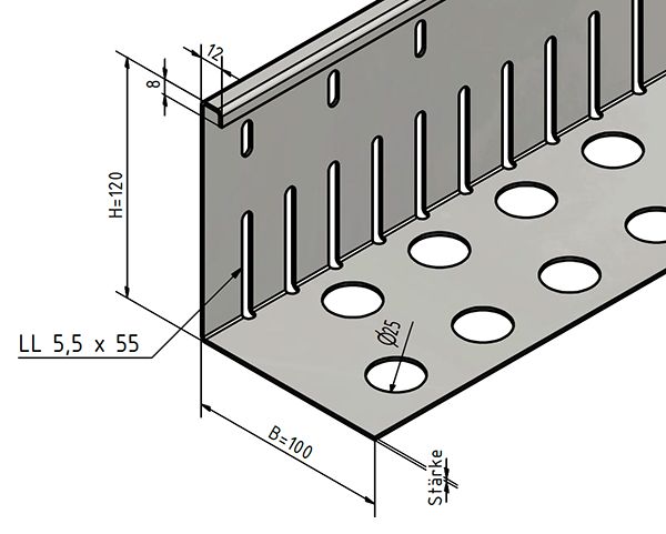 Lees meer...Grindkeringsprofiel, groot, geperforeerd, roestvrij Staal, 1.4301, - gezet 90°.