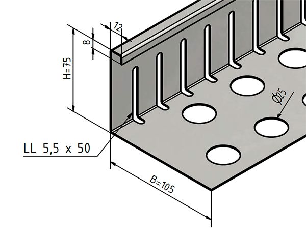 Lees meer...Grindkeringsprofiel, klein, geperforeerd, Aluminium gezet 90°.