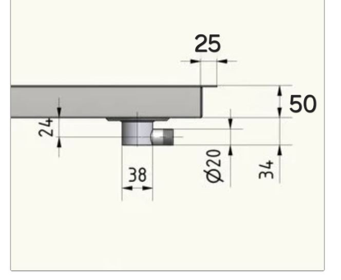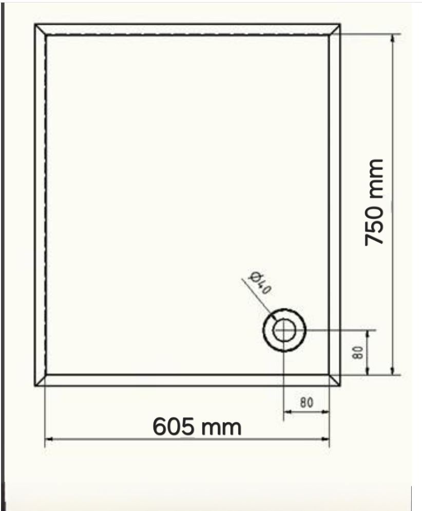 Speciaal - Douchebak van roestvrij staal, douchebodem {R3A} 1,5 mm, binnenzijde K320 geborstelde afwerking, afmetingen 605x750 mm plus 25 mm rand, hoogte 50 mm