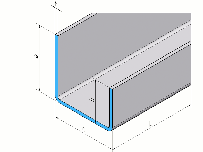 Speciaal U-profiel 1,0mm RVS BUITEN korrel 320 axcxb axcxb 31x42x61mm (binnen 30x40x60mm) lengte 2500mm