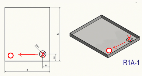 Speciale roestvrijstalen douchebak {R1A} 1,5 mm, binnenzijde K320 geborstelde afwerking, diepte 620 mm, breedte 850 mm, 1 afvoergat, hoogte 60 mm, inclusief Dometic 90° afvoersifon