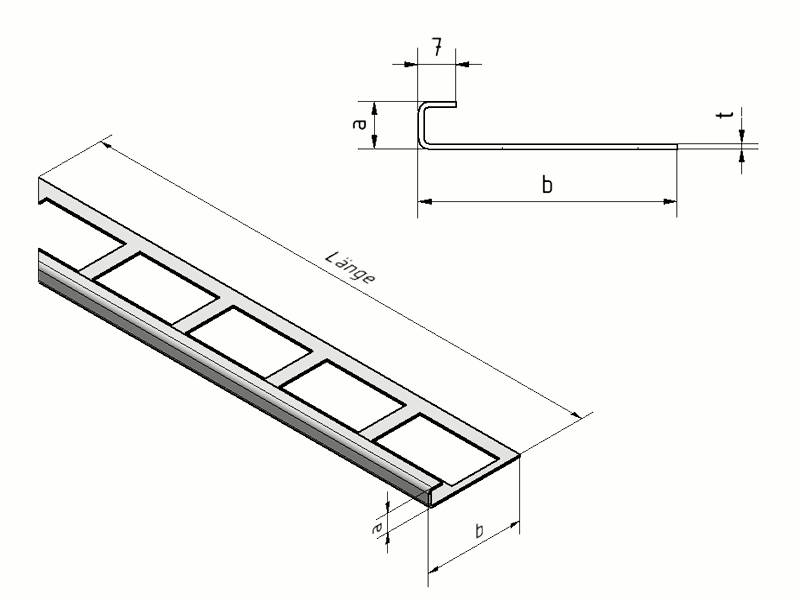 Tegelstrip 2 Tegelrand Tegelprofiel roestvrij staal 1,0 mm, reflecterende 2R (IIID) verkrijgbaar in verschillende hoogtes en lengtes. Voer de gewenste lengte in tot de orderlengte in het onderstaande veld.