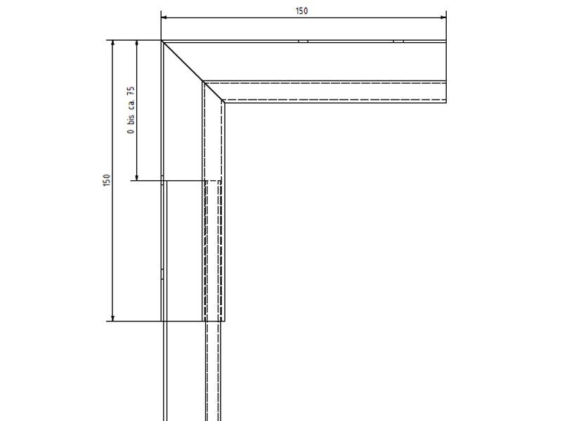 Goot P bakgoot gootprofiel binnenhoek 90° gemaakt van roestvrij Staal buitenzijde geschuurd