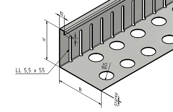 Lees meer...Grindkeringsprofiel, klein, geperforeerd, roestvrij Staal, 1.4301, - gezet 90°.